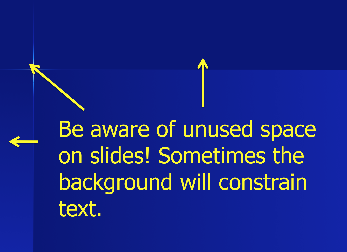 Many times, the backgrounds and templates we choose will subconsciously constrain our use of the slides. This is very common when we are mandated to use template slides for branding, but not allowed to step outside of the template when needed.