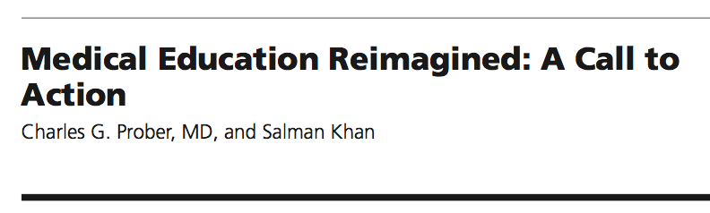 Charles Prober (senior associate dean at Stanford SOM and author of the article “Lecture Halls Without Lectures”) and Salman Khan (creator of the Khan Academy) have co-authored an editorial calling for “a collaborative, multi-institutional effort to reimagine medical education.” This “reimagining” recognizes that the current medical system is generally inflexible to individual learners and embraces the flipped classroom model at it’s core.