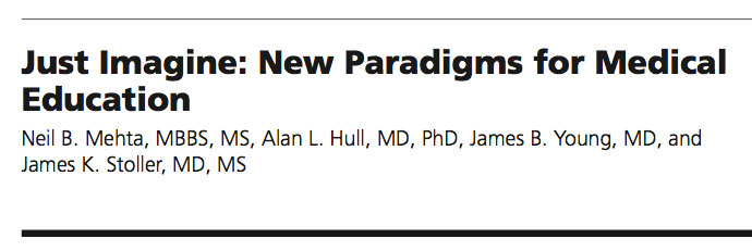 Mehta, et. al. “Just Imagine: New Paradigms for Medical Education.” Academic Medicine. 2013; 88(10)